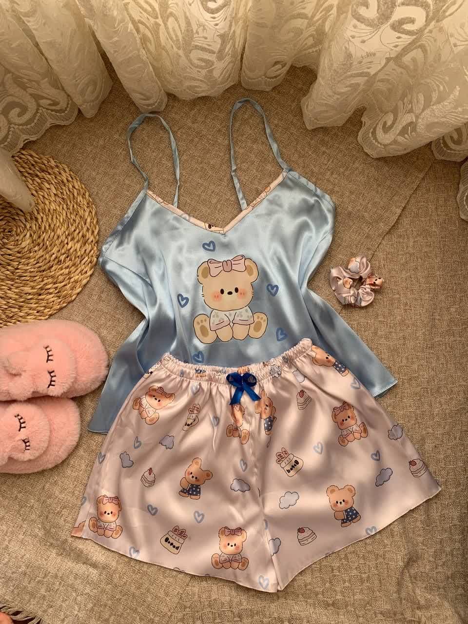 پیراهن استین کوتاه و پیژامه طرح سوییت تدی