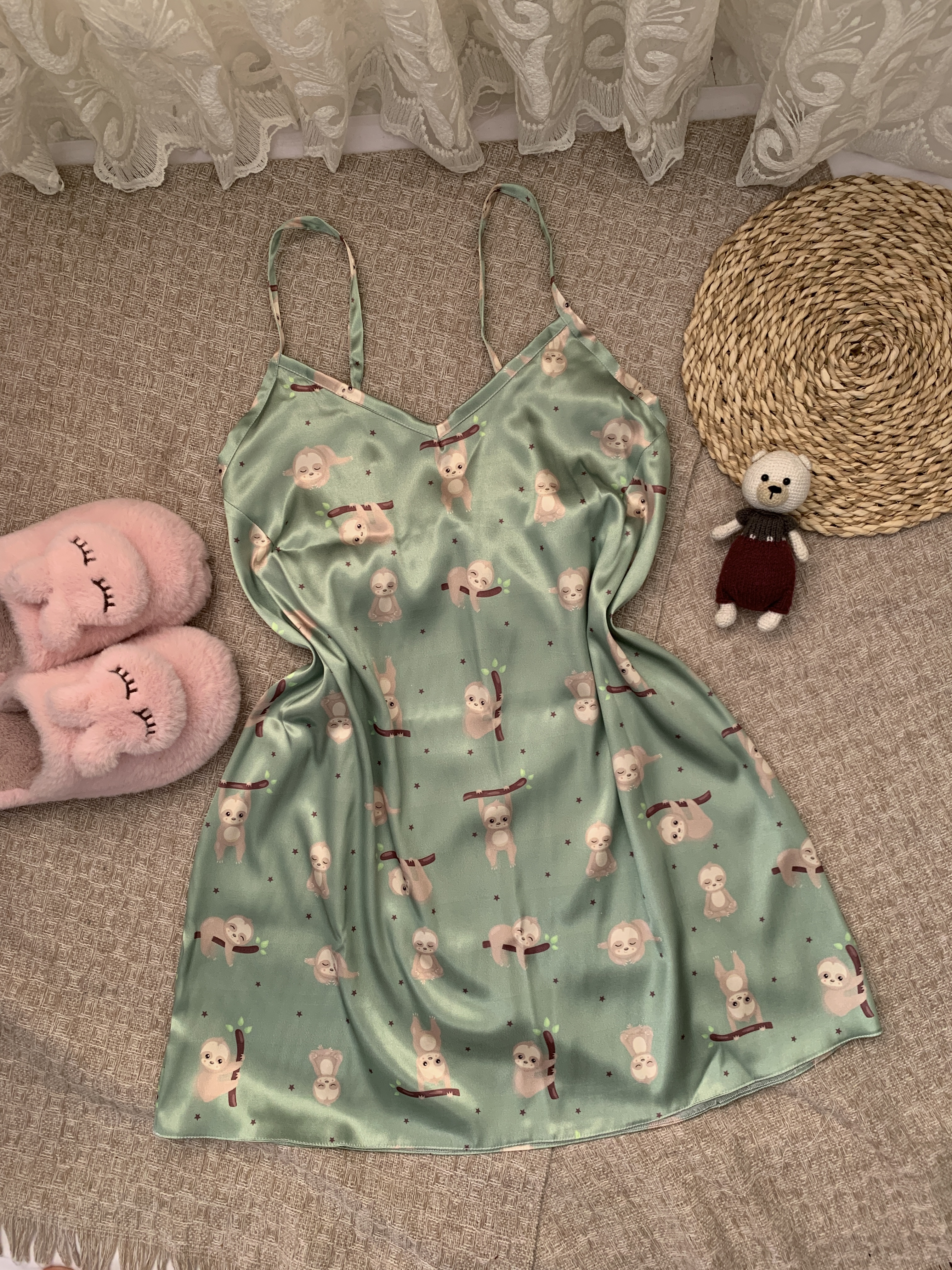 پیراهن استین کوتاه و پیژامه طرح پر سبز