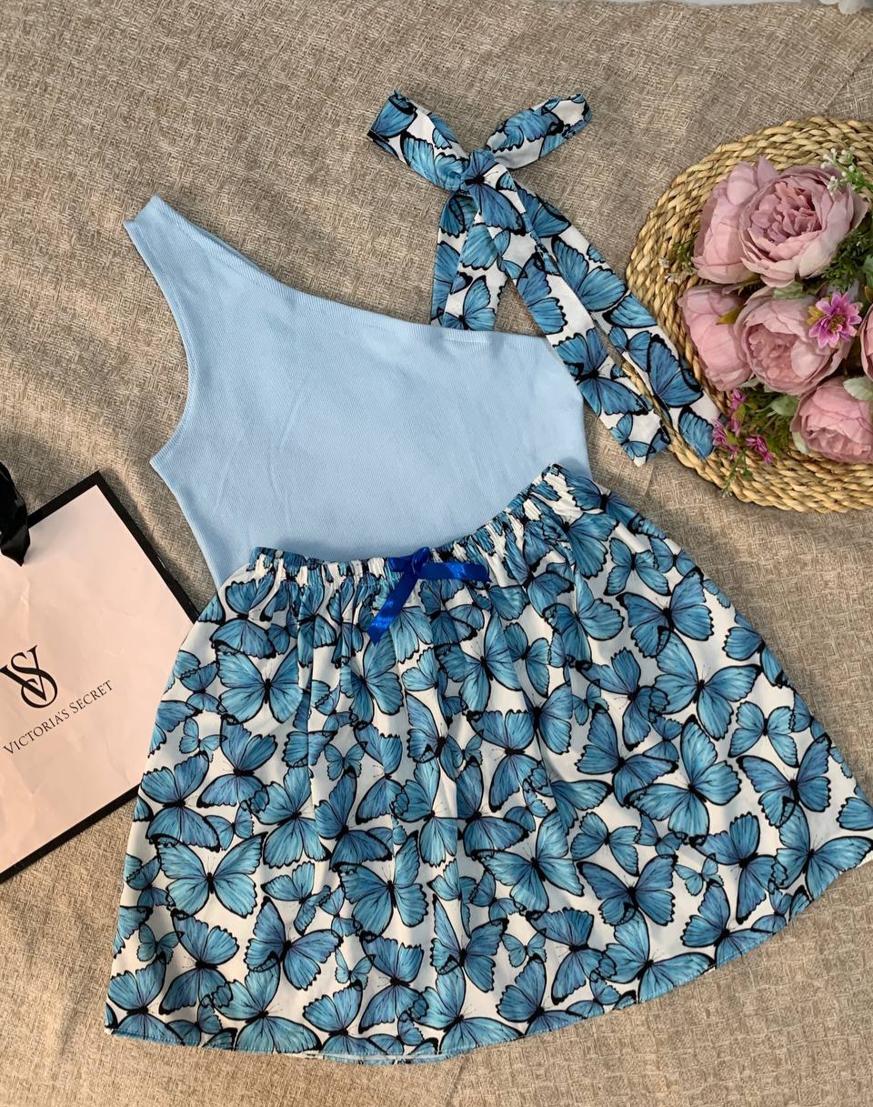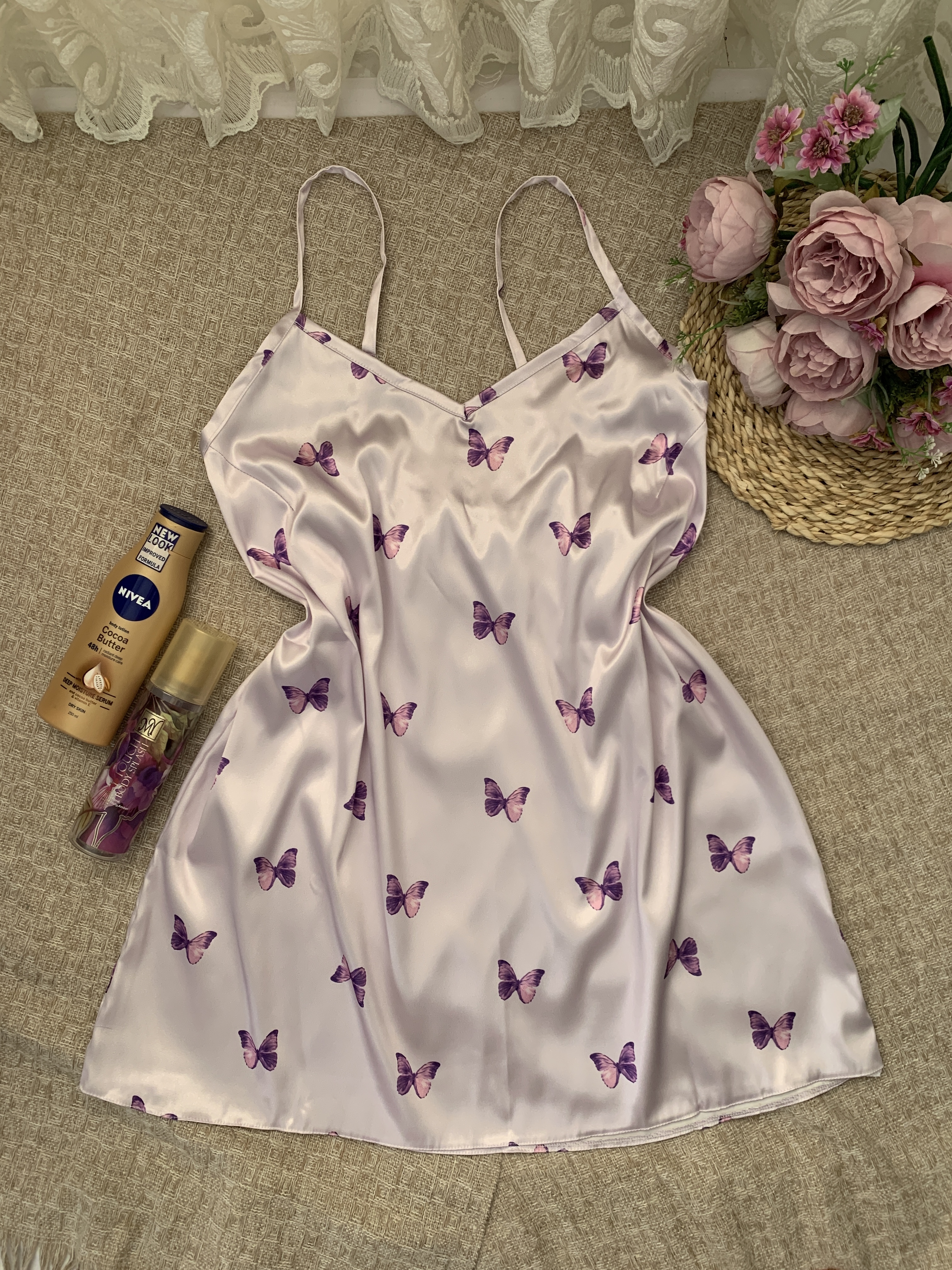 پیراهن استین کوتاه و پیژامه طرح پروانه یاسی