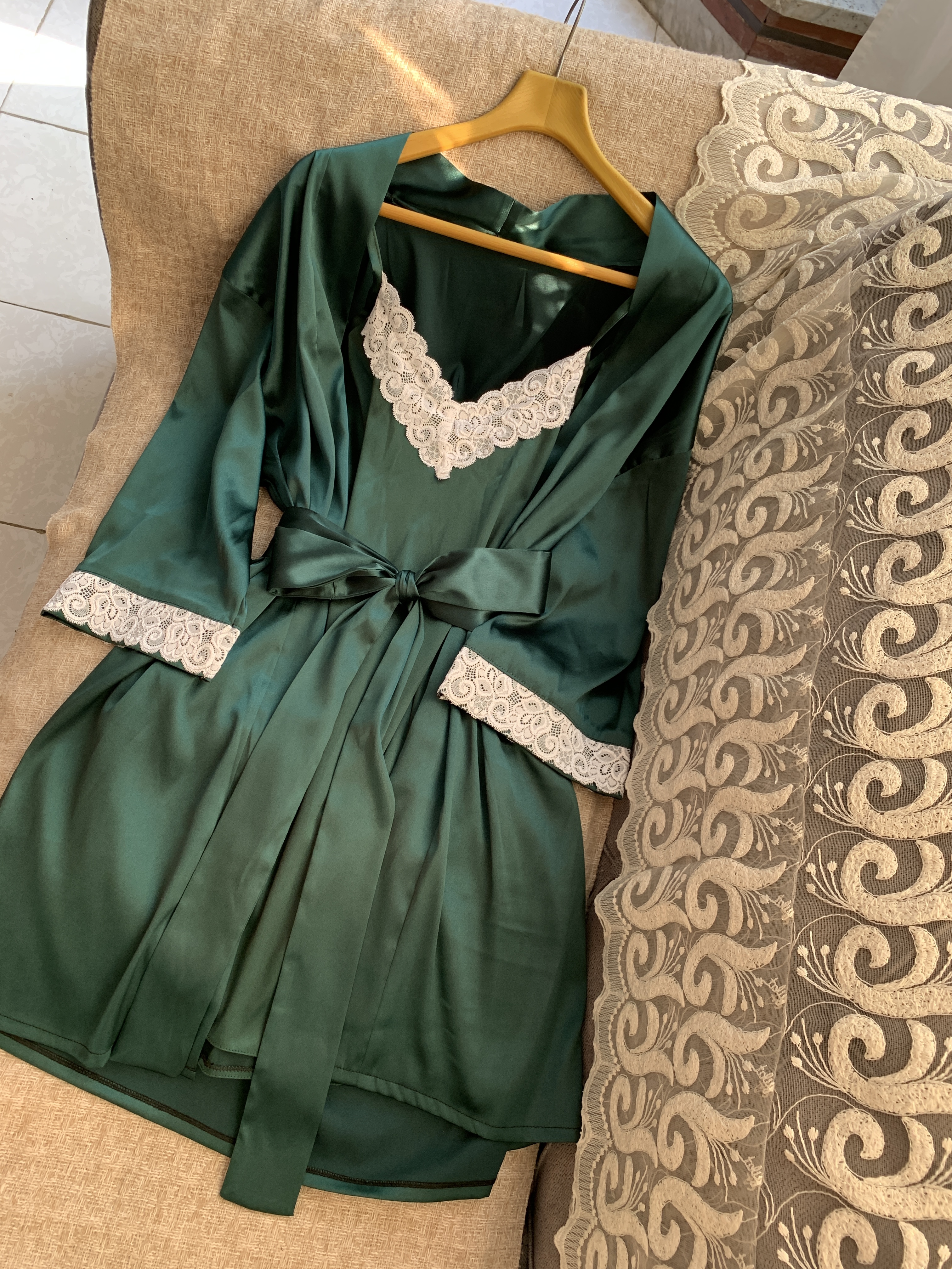 پیراهن استین کوتاه و پیژامه خال زمرد