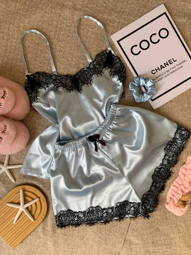 تاپ و شورتک ساتن بیسیک آبی آسمانی