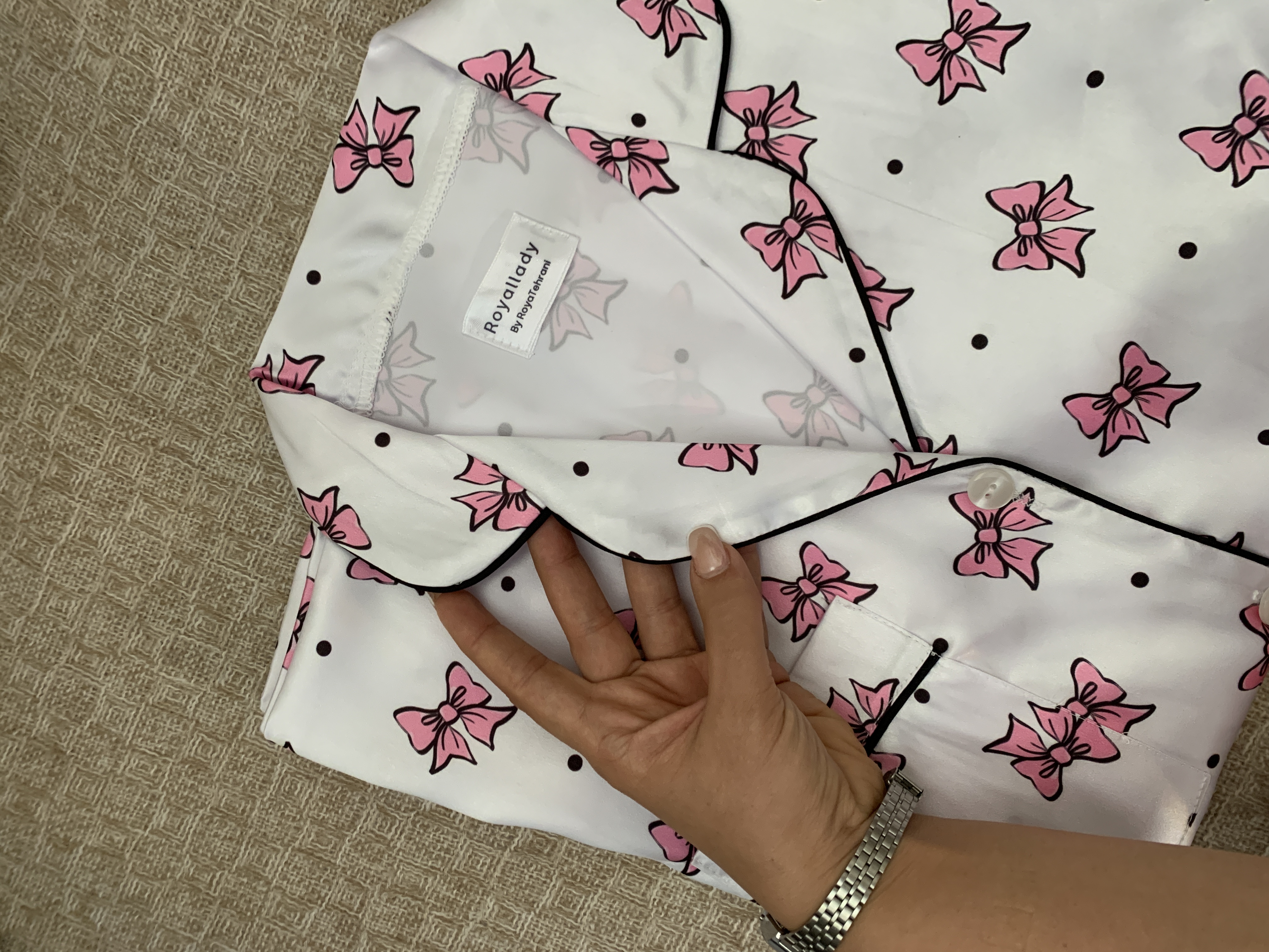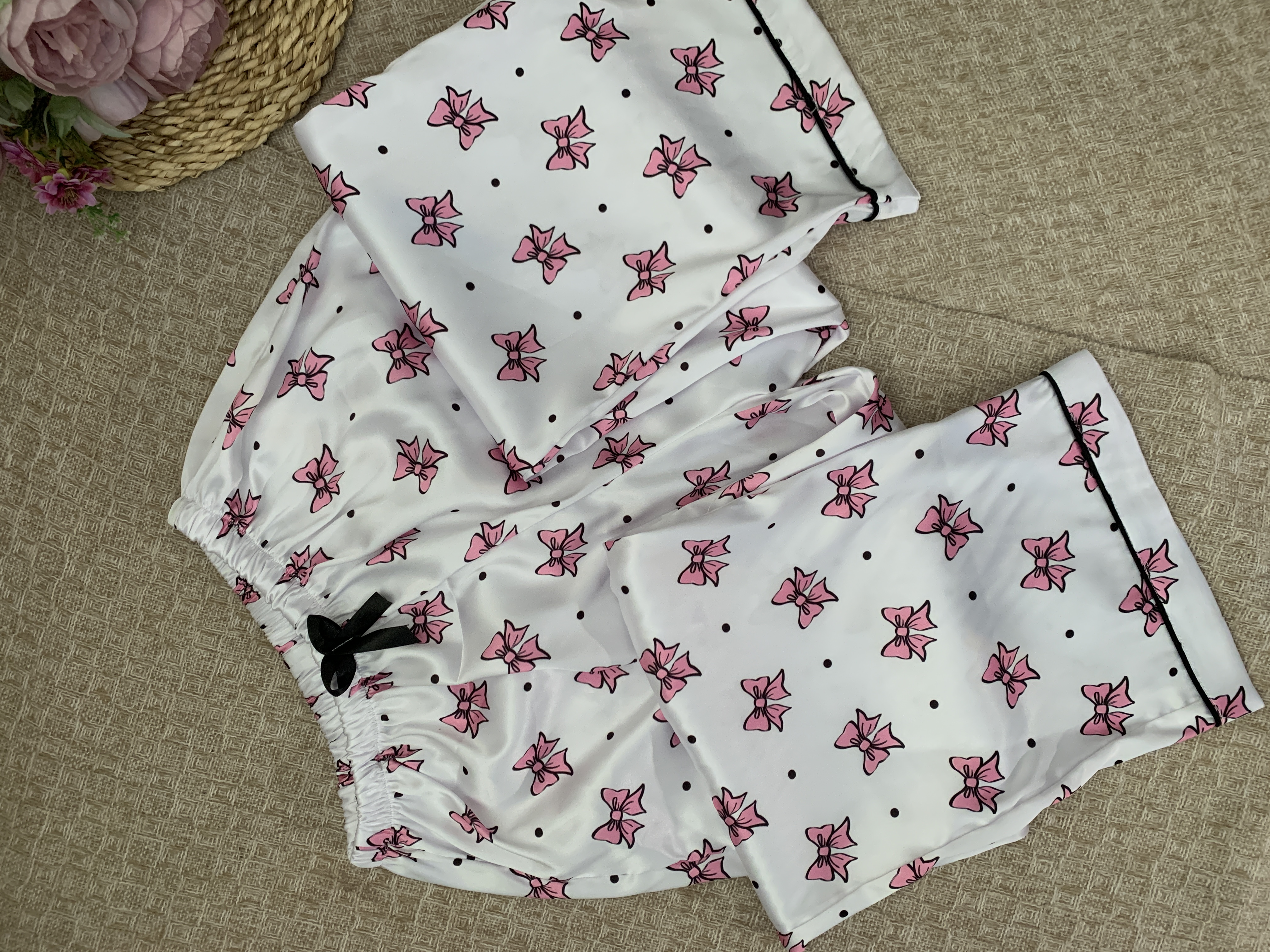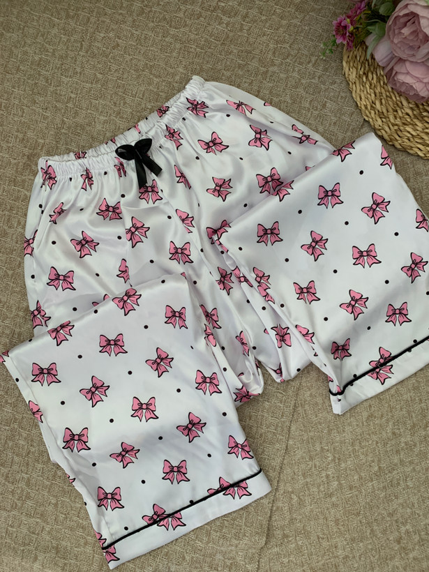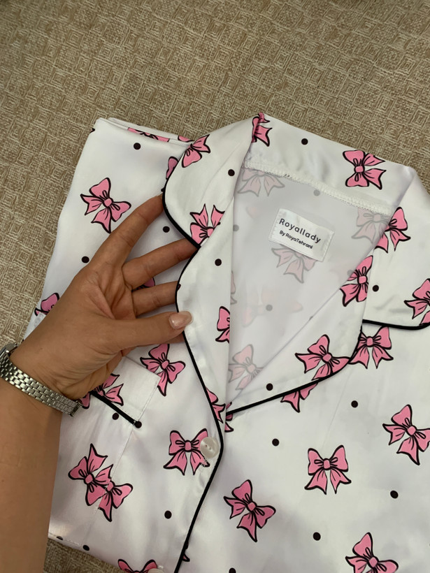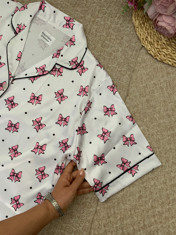 🎀پیراهن آستین کوتاه و پیژامه پاپیون