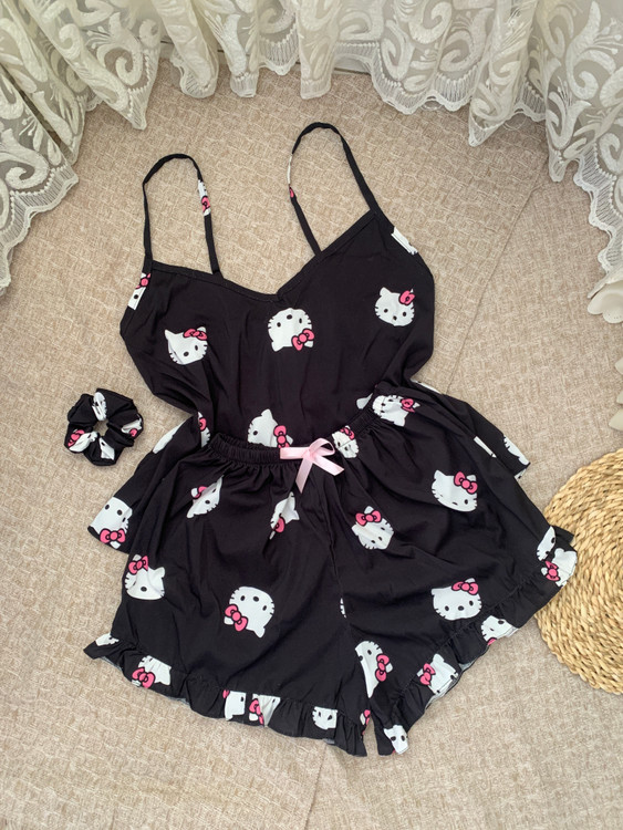تاپ شورتک کیتی مشکی چین دار