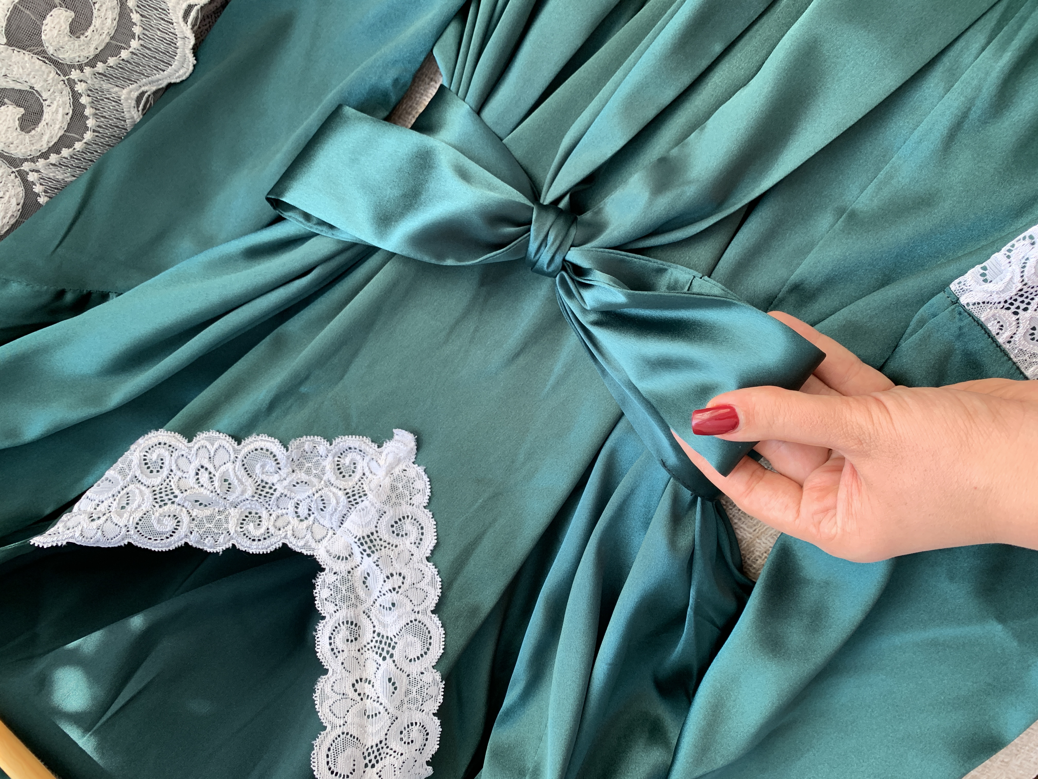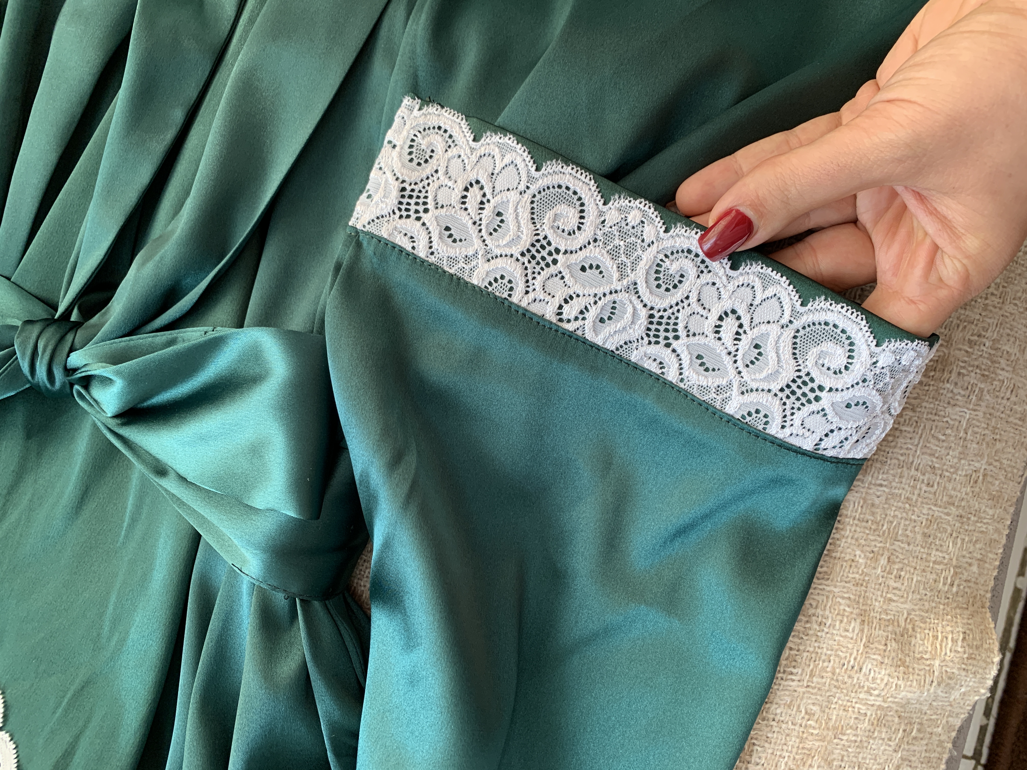 🌴ست سارافون و روبدوشامبر سبز درباری🌴