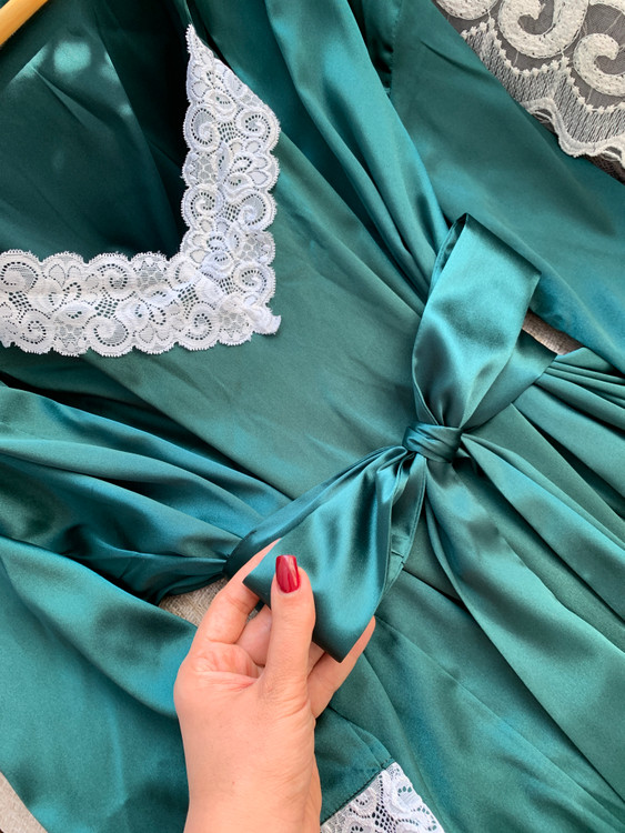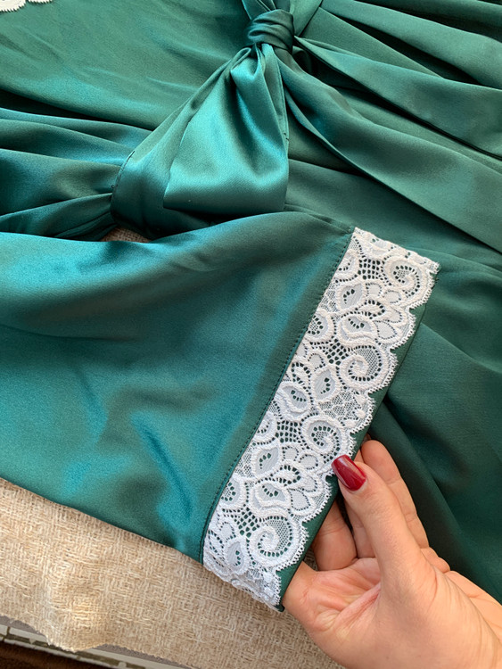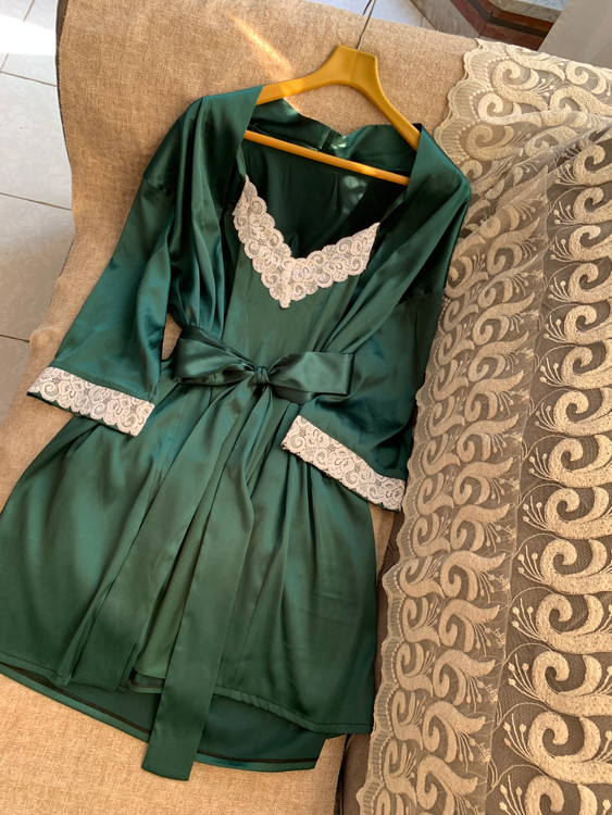 🌴ست سارافون و روبدوشامبر سبز درباری🌴
