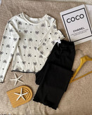پیراهن استین بلند و شلوار تریکو طرح پاپیون مشکی