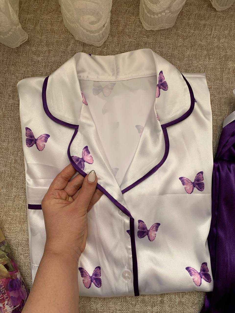 پیراهن استین کوتاه و پیژامه پروانه بنفش
