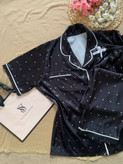 پیراهن استین کوتاه و شلوار تمام مغزی دوزی مدل خال خالی مشکی