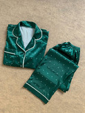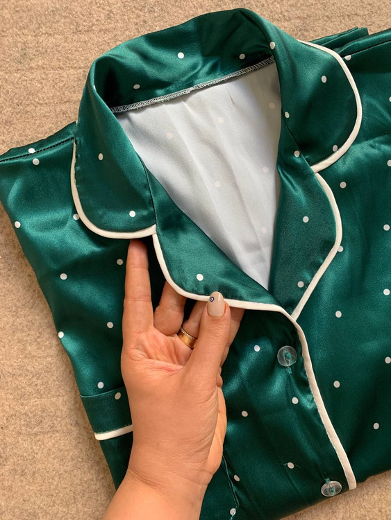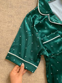 پیراهن استین کوتاه و پیژامه خال زمرد
