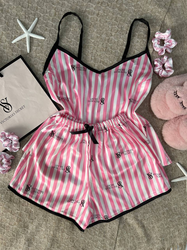 تاپ و شورتک ساتن ویکتوریا نوار مشکی