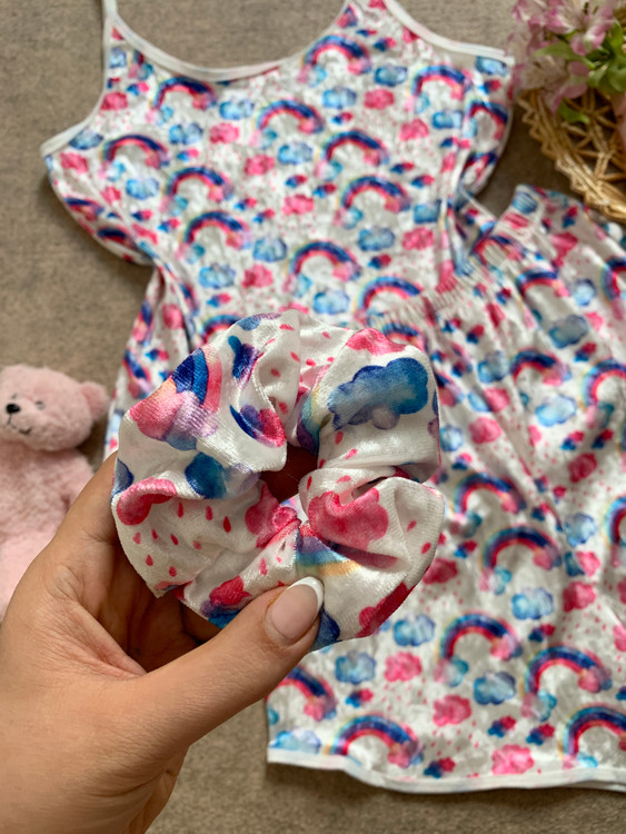 سه تیکه شامل: تاپ+شورتک+کش مو