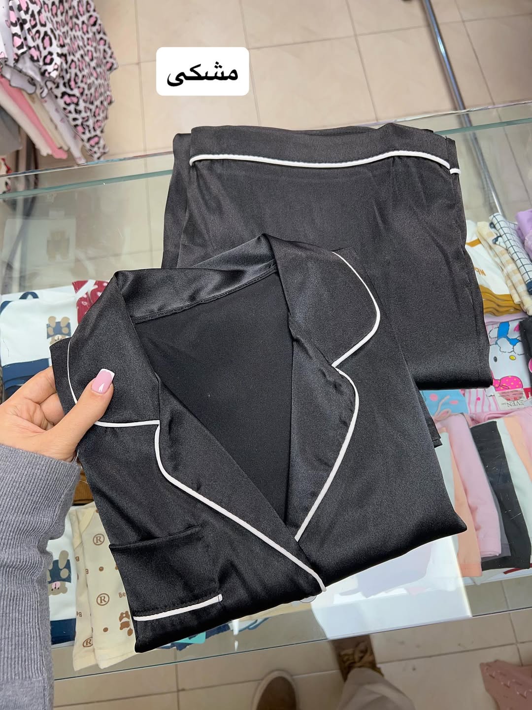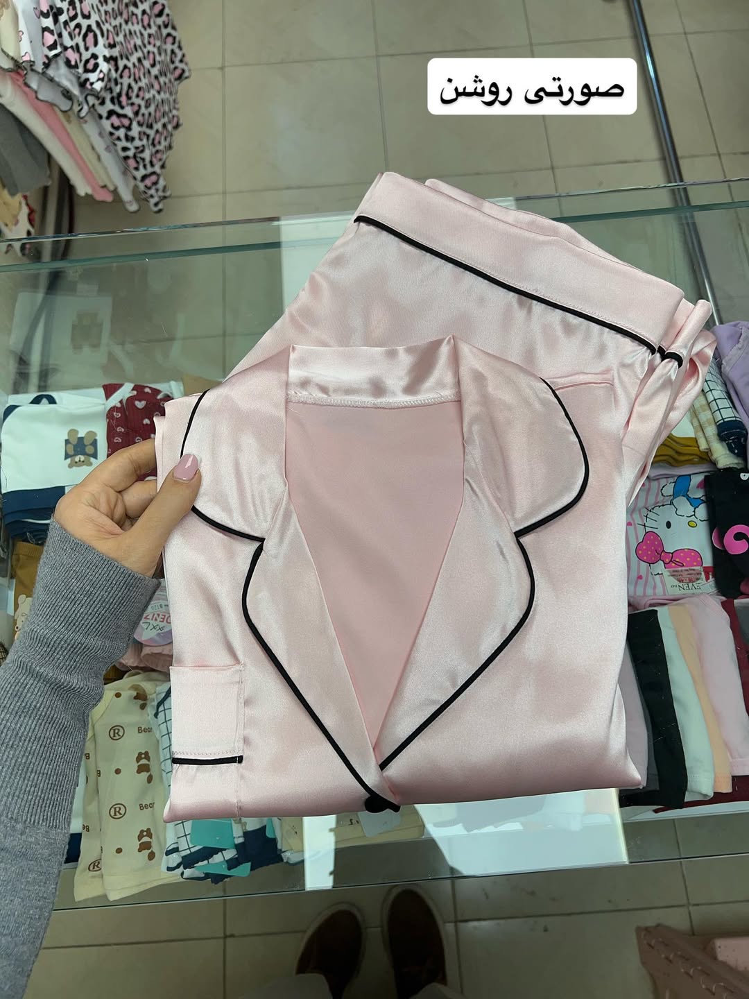 پیراهن آستین کوتاه و پیژامه ساتن بیسیک