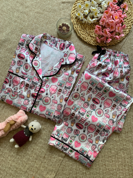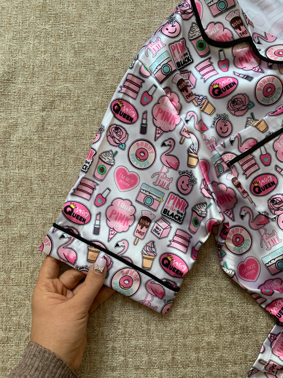 🍭پیراهن آستین کوتاه وشلوار تمام مغزی دوزی مدل کندی