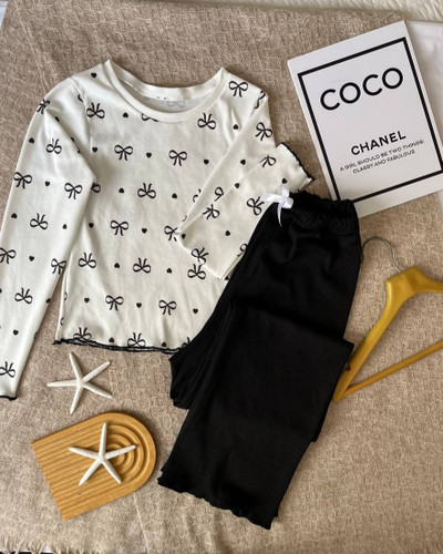 پیراهن استین بلند و شلوار تریکو طرح پاپیون مشکی