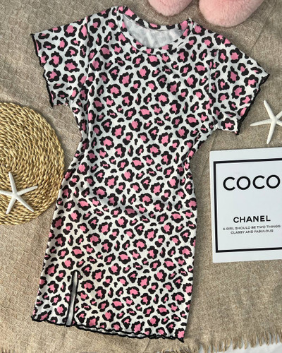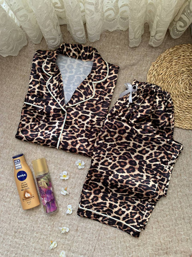 پیراهن استین بلند و شلوار پلنگی قهوه ای