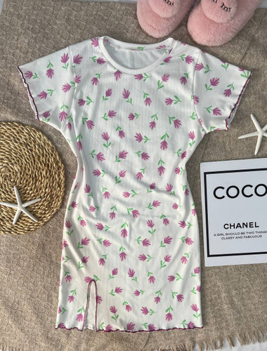 پیراهن استین کوتاه و پیژامه پروانه بنفش