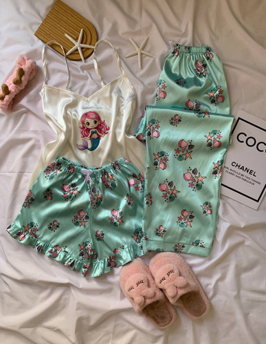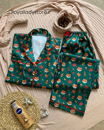پیراهن استین کوتاه و پیژامه طرح پر سبز